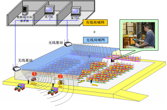 下圖是一個典型的無線倉儲系統(tǒng)網(wǎng)絡(luò)設(shè)計方案,用戶需要在現(xiàn)有的有線(局域)網(wǎng)絡(luò)基礎(chǔ)之上將其延伸至倉庫現(xiàn)場,使得無線網(wǎng)絡(luò)信號通過接入點(diǎn)的部署覆蓋需要的區(qū)域,現(xiàn)場操作者使用移動終端設(shè)備可以實時與后臺系統(tǒng)進(jìn)行數(shù)...